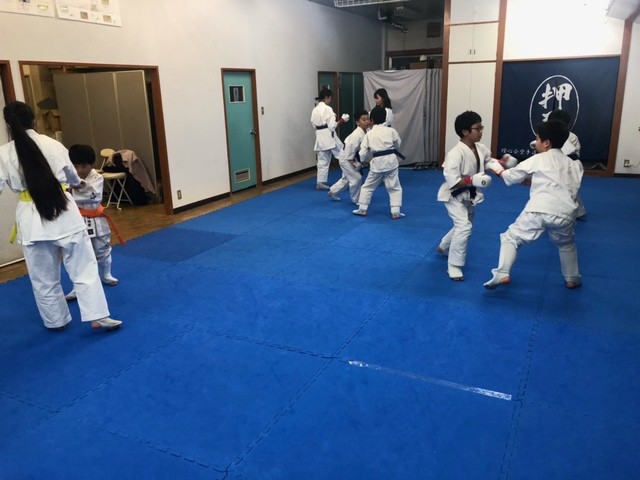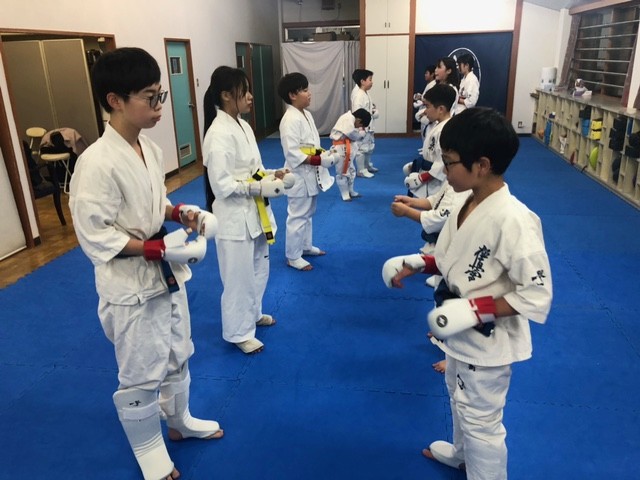 三宿教室は最近体調不良で休む子が多かったのですが、今日は久しぶりに参加する子もいて活気のある稽古になりました。日曜日の支部内交流試合に出場する子に向けて、組手の稽古を沢山行いました。