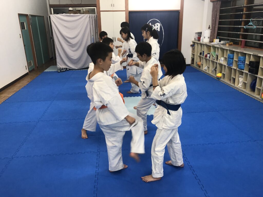 これは空手の技だけでなく、「礼」をするときも「これから一緒に稽古をお願いします」という気持ちを込めてしっかり挨拶をするし、返事をするときも「わかりました」という心を込めて「押忍!」と返事をするし、スパーリングの後には、「一緒に戦ってくれてありがとう」と心を込めて「ありがとうございました!」と伝えましょう。