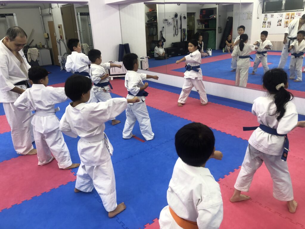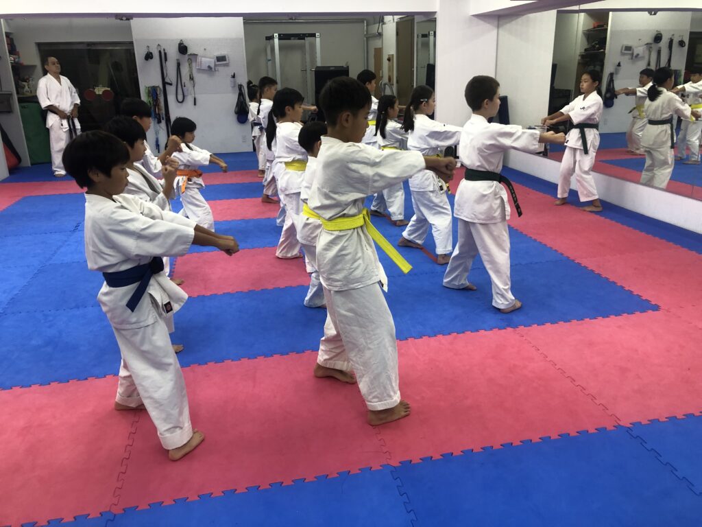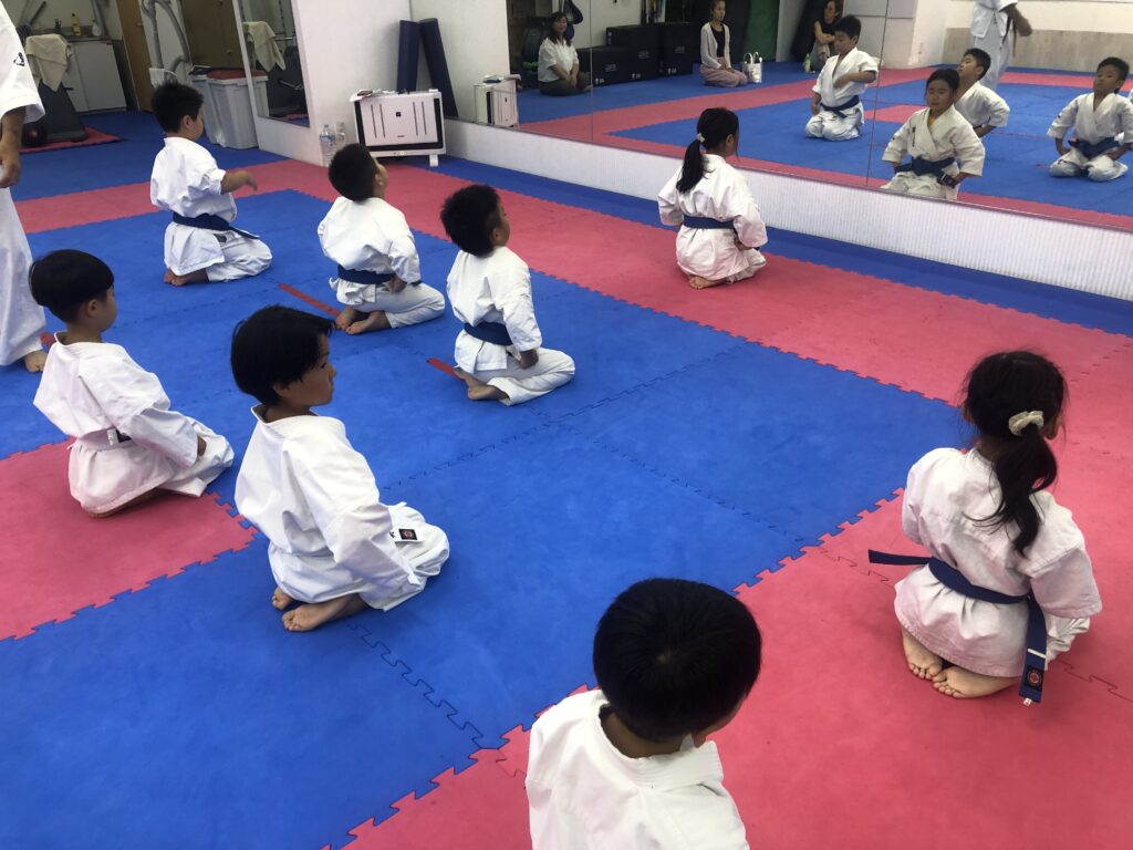 空手の稽古をして突きや蹴りを強くするだけでなく、「強くて優しい人になろう」「学校や家で空手の技をふざけて使わないようにしよう」と稽古の中で伝えるようにしています。